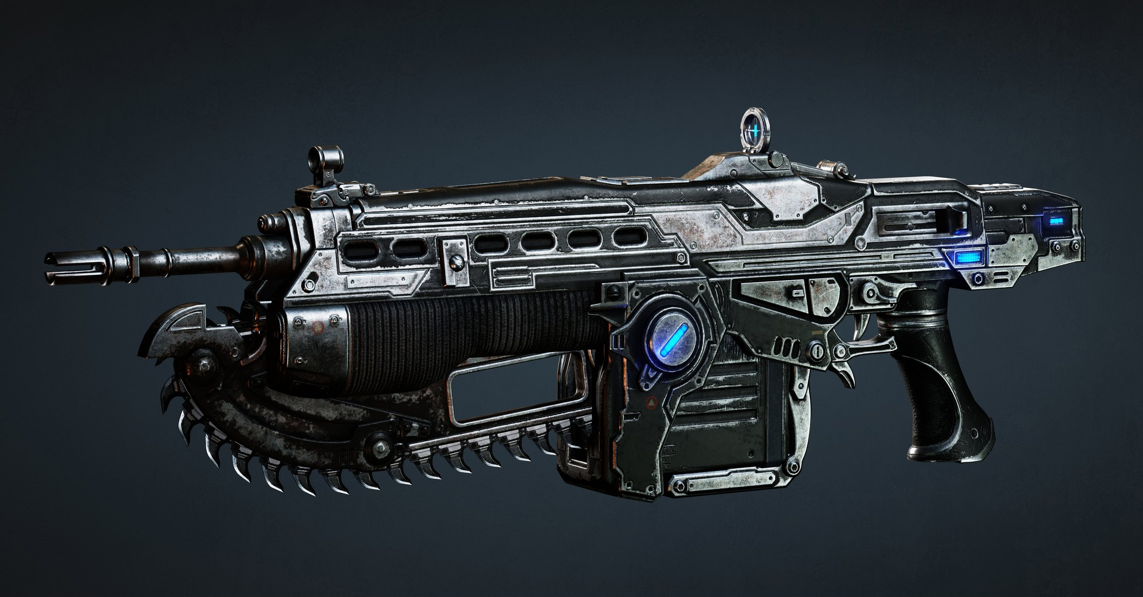 Gears Of War Chainsaw Gun - Gears 5 Crimson Lancer Mk3 Gamestop : And other cool facts from did you know gaming.. 3,916 views · same category | replica guns. Instead of the enemy being messily cut in half, the chainsaw will emit sparks as it slices through the enemy before he drops dead, body intact. Brushed metal paint job on full plastic construction. This machine gun features an almost ridiculous, but definitely awesome chainsaw attachment that has become synonymous with the series thanks to its amazing levels of gore and overall visceral feel. That's no moon entertainment formed by call of duty and playstation.
